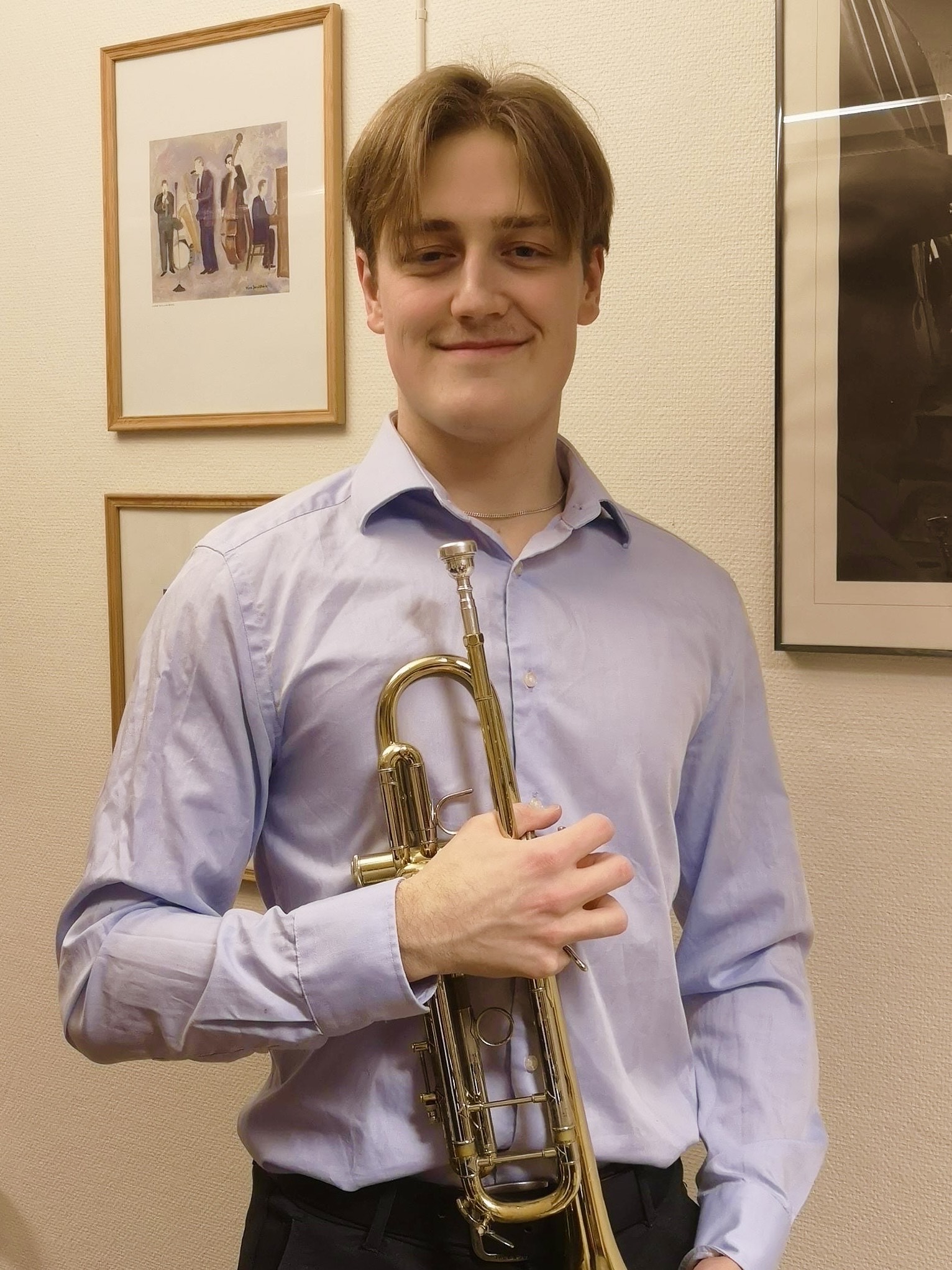 Jag heter Joel Grenholm och är 18 år. Jag går mitt sista år på musikkonservatoriet, där jag studerar jazztrumpet för Thomas Caudery. Jag är uppvuxen i Falun och har spelat trumpet sedan mellanstadiet. Med jazzen som utgångspunkt fortsätter jag att utveckla mitt personliga uttryck, både i ensemblespel och som solist. Efter studierna planerar jag att fortsätta mitt musicerande på högre utbildningar.